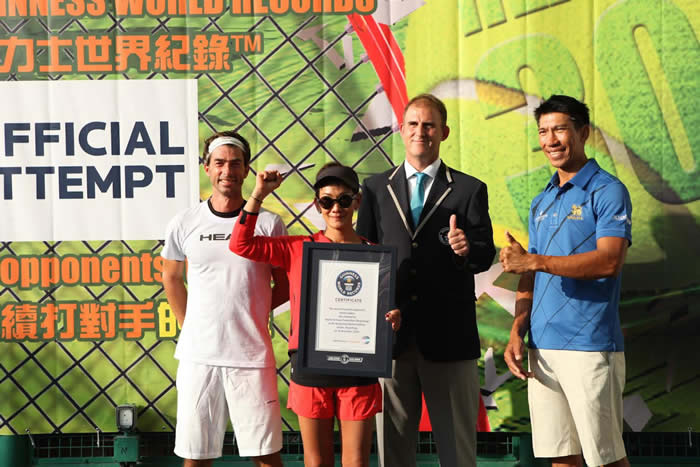 Over 32 hours and 21 minutes, the 40 year-old professional coach break the record for challenging 33 consecutive tennis singles opponents in one attempt at the Hong Kong Sports Institute this weekend.