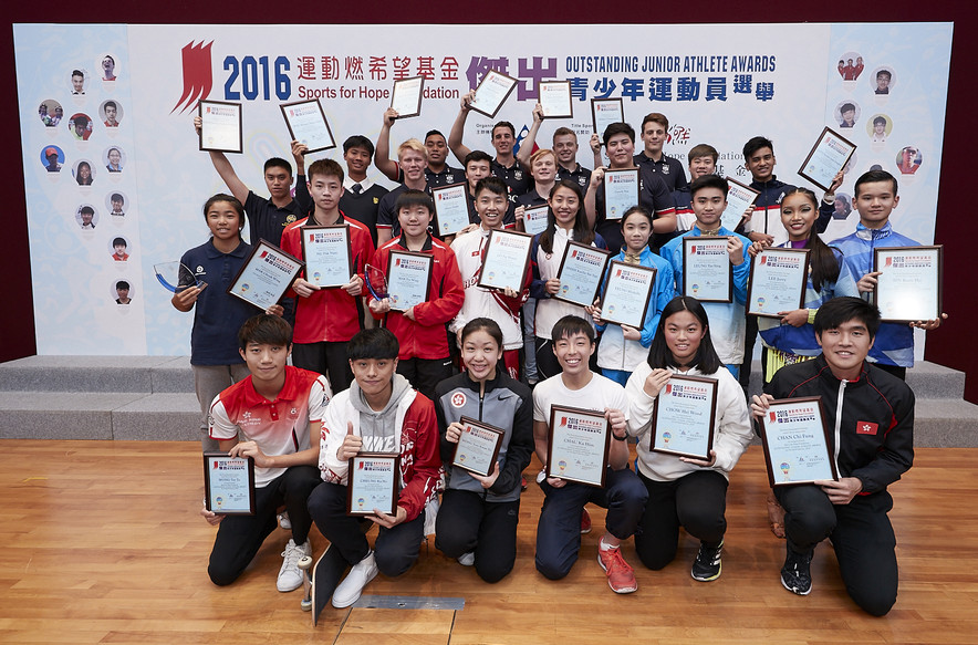 The annual celebration and 4th quarter 2016 presentation ceremony of the Sports for Hope Foundation (SFHF) Outstanding Junior Athlete Awards (OJAA) took place at the Hong Kong Sports Institute (HKSI) today.  For this quarter, a total of 43 junior athletes were presented with awards in recognition of their outstanding achievements.  To conclude the 2016 sporting performances, three annual awards were also presented at the Ceremony.
