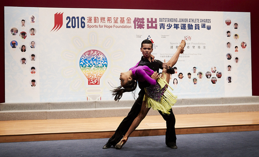 Dance partners Jerry Lee and Sin Kam-ho were awarded the title for the first time.  They have achieved very good results in the ADSF Junior II Championships and the 26th National DanceSport Championships this quarter.  Both of them sincerely thanked SFHF for the encouragement given and would use the money on the course fee and costumes.  They hope the Award could arouse people’s awareness of dance sport in Hong Kong, and bring it to the next level.