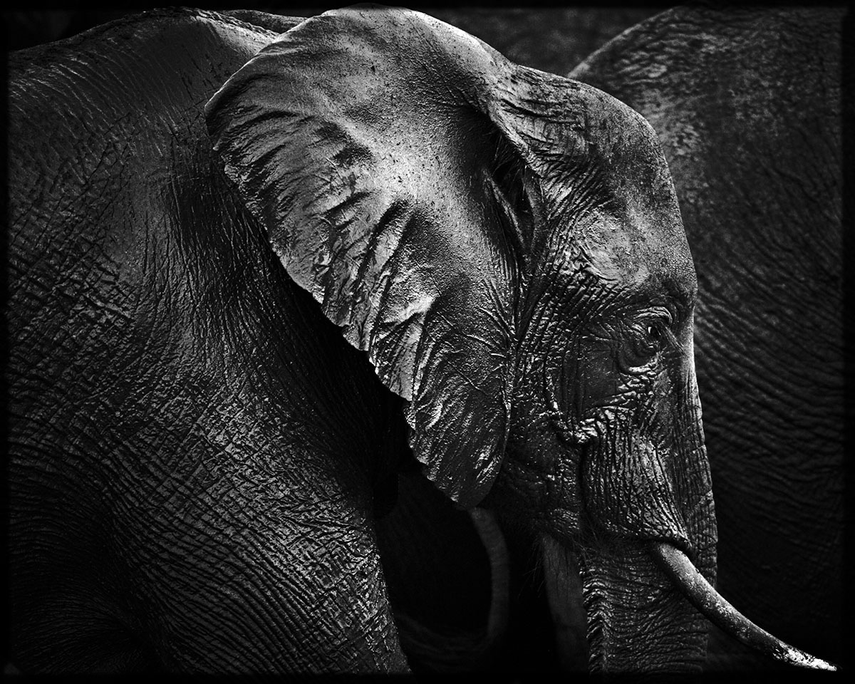 With his deep black and his strong contrasts, Laurent offers a sensitive and original image of wildlife. Big mammals like lions, elephants or rhinoceros are presented in an natural and quiet environment. The photographer presents photos which emphasize attitudes, animals with almost human looks. Shot frontally and in close up, Laurent’s portraits in black and white are different from the norms of animal photography as they are more reminiscent of the grand tradition of photographic portraiture. The artist deliberately highlights the animals’ character traits, as well as the intensity of their gazes and the majesty of their postures, magnified by a surprising play of light and shade.